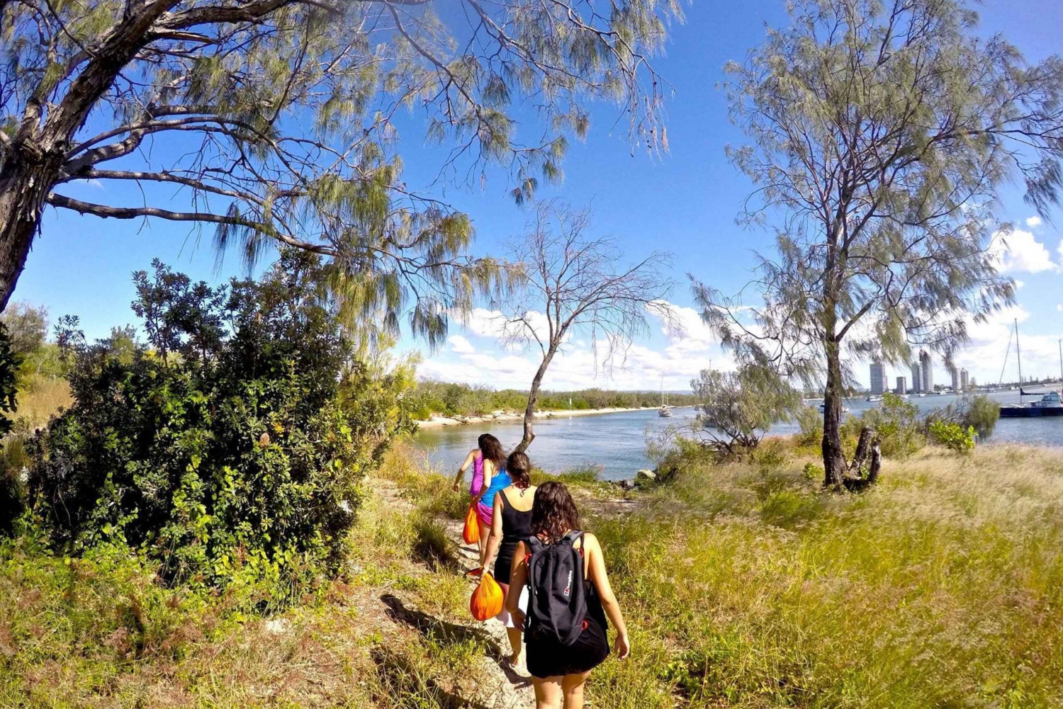 Du paddelst durch wunderschöne Sandbänke, von denen du einen einzigartigen Blick auf die Gold Coast City hast, und erreichst die Nordseite von Wave Break Island, wo du deine Kajaks an einem malerischen Ort parkst.