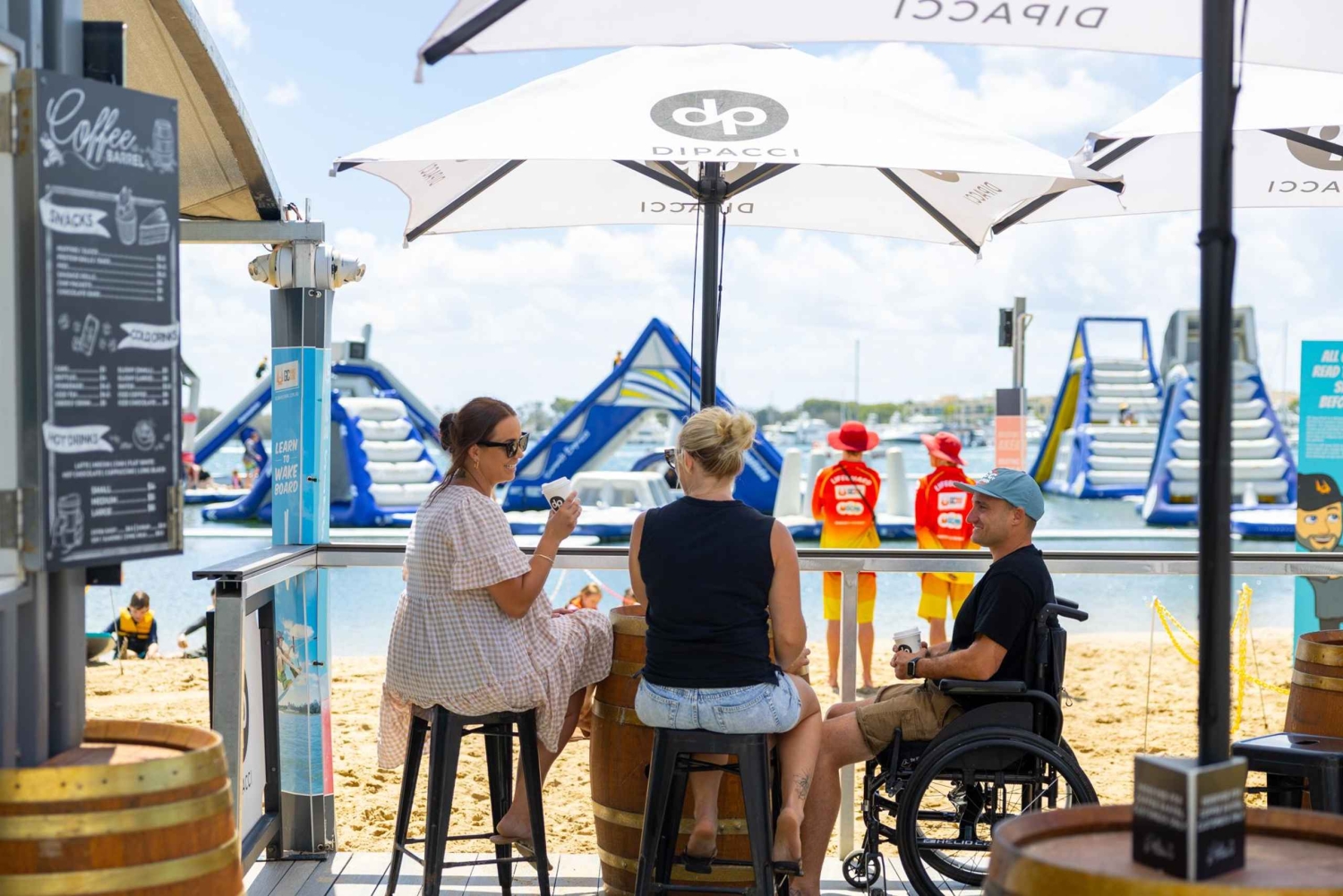 Maak een plons en stuiter door opblaasbare speeltuinen met een pas voor de hele dag voor GC Aqua Park in Broadwater Parklands aan de Gold Coast. Ervaar de spanning van het overwinnen van waterglijbanen en dynamische hindernissen voor een dag van ongebreideld plezier in het grootste opblaasbare waterpark in de regio. Ga op eigen gelegenheid naar GC Aqua Park, gelegen in de prachtige Broadwater Parklands van de Gold Coast. Betreed dan een wereld vol spanning, plezier en avontuur voor alle leeftijden met je pas voor een hele dag in dit waterwonderland. Dompel je onder in een dag vol spannende waterglijbanen, bedwing uitdagende hindernissen en spring op de grote opblaasbare speelplaatsen. Dankzij de toplocatie aan het strand is het GC Aqua Park het hele jaar geopend en kun je genieten van de schoonheid van de omgeving terwijl je geniet van de waterfestiviteiten. Ontspan in de wetenschap dat oplettende badmeesters een scherp oogje in het zeil houden op je geliefden; veiligheid staat voorop in dit opwindende waterpark. Neem een pauze in het Barrels Café om bij te komen met lekkere snacks en verfrissende drankjes, omringd door de ontspannen sfeer van Broadwater Parklands.Includes