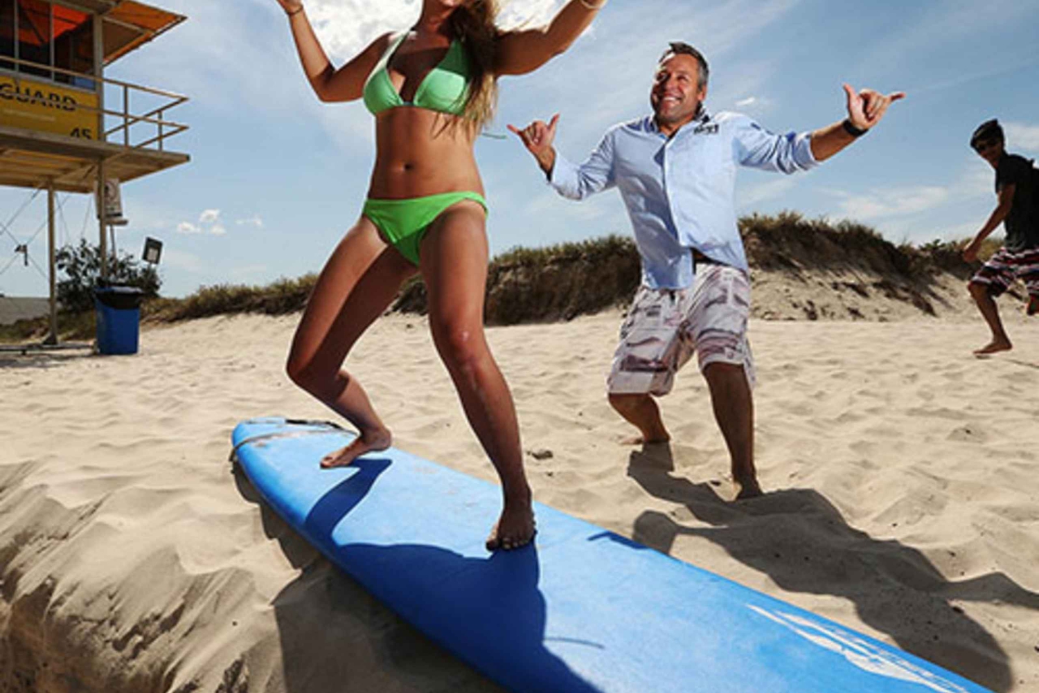 Meet your instructor and head to the beach. Get a safety briefing and learn the basics of surfing. Then, hit the waves and practice your skills. Enjoy the thrill of catching your first wave and standing up on the board. Benefit from personalized instruction and a low student-to-coach ratio. Learn from experienced instructors who are passionate about surfing and dedicated to helping you succeed. Whether you're a complete beginner or looking to improve your skills, this lesson is perfect for you. There is nothing we like more, than seeing the thrill people experience when they stand up for the first time. This is why we provide our clients with easy to use techniques, low student to coach ratios and the ideal location. We consider success to be someone booking more lessons, or asking us about what board to buy, or what they should do next to continue their surfing. Kelly Slater once said “Surfing is like the mafia. Once you’re in – you’re in. There’s no getting out.” And we want to get you in to our mafia.Includes